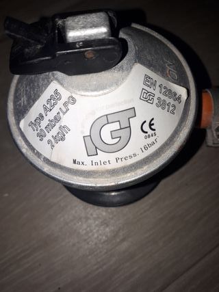 Se vende regulador de gas con tubo de 1 metro de longitud. - Regulador tipo A235. - Presión máxima de entrada: 30 mbar. - Conexión para gas licuado de petróleo (LPG). - Tubo de conexión de 1 metro.
