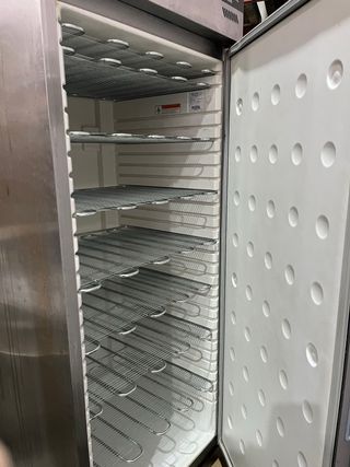 Nevera y congelador vertical con múltiples estantes metálicos uso bares restaurantes tiendas hostelería en general - Diseño interior con rieles para bandejas. Integral en acero inoxidable