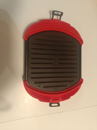 Grill para microondas de la marca Lekue en color rojo. Ideal para cocinar a la parrilla. - Material de silicona y metal. - Diseño compacto y fácil de usar.