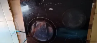 Vitrocerámica Beko de tres fuegos. Cristal roto, funciona perfectamente. - Encimera de cristal negro. - Controles táctiles. - Indicadores luminosos de calor residual.
