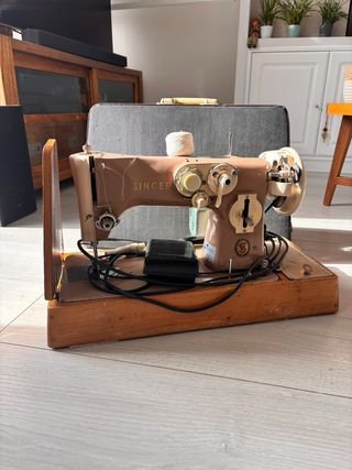 Máquina de coser automática SINGER modelo 801Z. - Color marrón. - Base de madera. - Incluye pedal y cable de alimentación y libro instrucciones, asi como varios accesorios - Incluye maletín - Actualmente se utiliza y funciona perfectamente