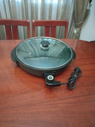 Estado como nuevo,poco uso. 1500w.potencia ,termostato variable con 5 potencias. Para todo tipo de asado ,verduras, paellas pizzas, crepes etc. Base antiadherente. 40 cm diámetro Tapa cristal térmico con válvula antibao.