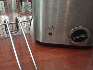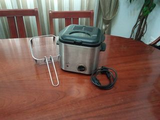 Freidora de aceite ,resistencia oculta para mejor limpieza.En acero inoxidable,con filtro en tapa ,con 850 W.de potencia , Ideal para una persona ,como los estudiantes cuando se van fuera de casa. Estado muy bueno.