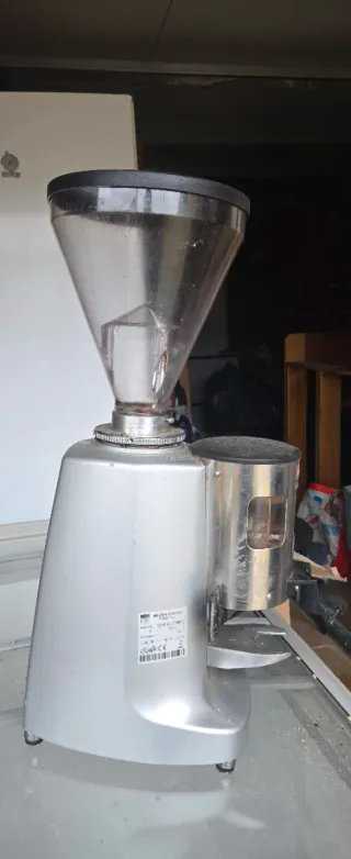 Molino de café plateado