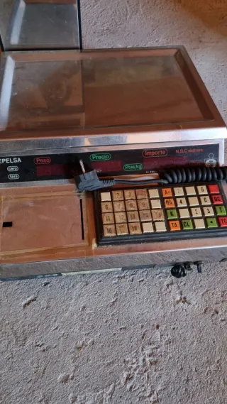 Báscula digital Epelsa con teclado numérico y pantalla. - Modelo N.B.C electronic. - Teclas para Peso, Precio e Importe. - Teclado numérico con teclas de función como Tara, Cero, TA, CL, DC, T, K, DA, A+. - Pantalla digital para mostrar datos.