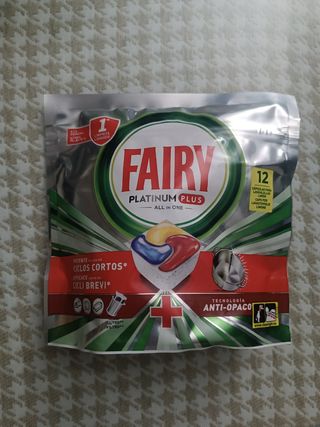 12 cápsulas lavavajillas Fairy Platinum Plus, para lavavajillas. Están en su embalaje original y parecen estar en perfecto estado. - Limpieza potente. - Ideales para ciclos cortos. - Tecnología anti-opacidad. - Incluye 12 cápsulas.