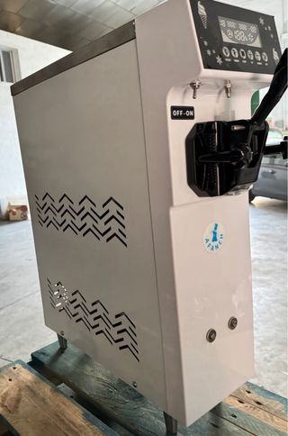 Máquina de helados de sobremesa, modelo AFANEH. Ideal para negocios de hostelería o eventos. En 6 minutos esta lista para servir helados. Tiene un mes de uso, tenemos un puesto de brownie y hemos dejado de ofrecer helados, por eso se vende. Se puede ver y probar sin problema. - Panel de control digital con pantalla. - Indicadores de temperatura y porcentaje. - Función de congelación y lavado. - Palanca ergonómica para dispensar. - Bandeja recogegotas extraíble.