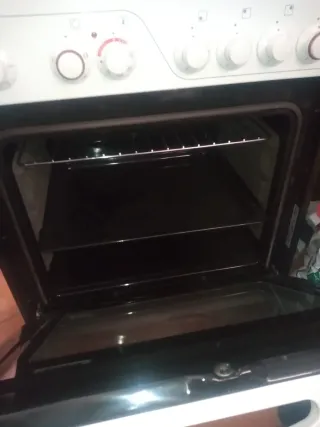 Cocina de gas con horno. - Encimera con cuatro fuegos. - Mandos frontales. - Horno con puerta de cristal.