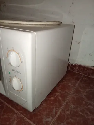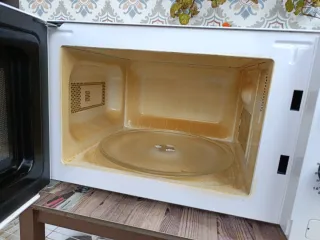 Microondas de color blanco de la marca Bluesky. Ideal para calentar y cocinar. - Diseño compacto. - Panel de control con mandos giratorios.