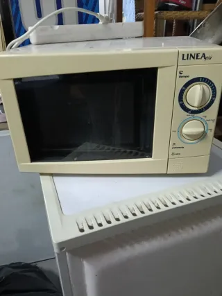 Microondas de sobremesa LINEApiù en color crema. - Panel de control con dos diales. - Puerta con ventana. - Diseño compacto.