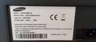 TV, MONITOR 22" SAMSUNG modelo: LE22C450E1W Es TV pero tambien puede ser ideal para usar con PC. Incluye cable de fuente. No tengo el control remoto, habria que usar uno generico. No es Smart. Se recoge en la zona de Cabrils, Barcelona.