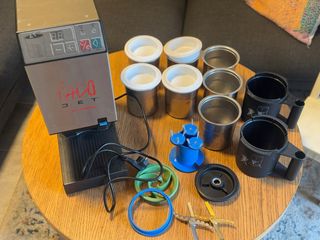 Calentador eléctrico con función caliente y fría. Tiene 2 cabezas recambiables, una para hacer espuma y la otra para calentar.En perfecto estado