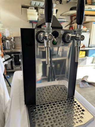 Dispensador de cerveza SINOP AK 40 con dos grifos. incluido están 4 cabezales (2 de keykeg) tuberías. - Diseño moderno y funcional. - Acabado en acero inoxidable y negro.