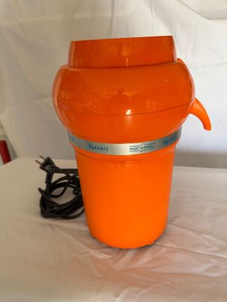 Exprimidor de zumo de la marca Dynamic. Ideal para naranjas, limones y limas. Dos tamaños de cabezales. - Color naranja vibrante. - Diseño compacto y funcional. - Fabricado en Francia.
