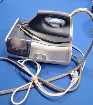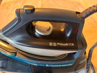 Centro de planchado con base y plancha. - Marca Rowenta, funciona correctamente - Depósito de agua transparente. - Dial de control de temperatura.