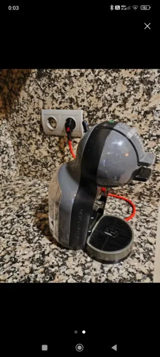 Vendo cafetera Nespresso De’Longhi, compacta y fácil de usar. Tiene 3 años de uso y funciona correctamente, hace café sin problemas. 🔹 Estado y funcionamiento La cafetera calienta bien y prepara el café con normalidad. De forma ocasional, uno de los botones puede quedarse parpadeando, pero no impide hacer café y la máquina sigue funcionando correctamente. 🔹 Características principales • Sistema Nespresso de cápsulas • 2 botones programables: café corto (espresso) y café largo (lungo) • Calentamiento rápido • Apagado automático por ahorro de energía • Diseño compacto, ideal para cocinas pequeñas • Depósito de agua extraíble