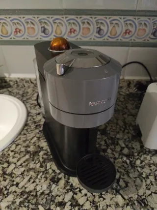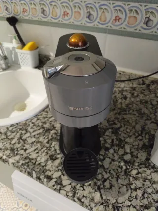 Cafetera Nespresso Vertuo Pop en color negro. Diseño moderno y compacto. Tiene un año y apenas la usamos. La vendemos porque los reyes nos han traido otra. - Depósito de agua extraíble. - Bandeja de goteo ajustable. Precalentamiento rápido 30 sec. Tamaños de taza de un solo toque Espresso, Double Espresso, Gran Lungo, Mug Portatazas ajustable Clase de consumo de energía A+ Apagado automático 2 min Capacidad del depósito de agua 600ml/20 fl oz. Dimensiones (AxAxL) (cm) 5.3 x 16.7 x 9.8in / 136 x 426 x 250mm Peso ~3.5kg/7.7lbs