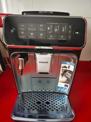 Cafetera super automática Philips Serie 2200 en color negro. Diseñada para preparar tus bebidas de café favoritas con facilidad. Usada muy poco, tiene los accesorios de serie (cuchara para café y aceite lubricante) la vendo por no usarla. Regalo 5 filtros descalcificadores compatibles con la cafetera. - Panel de control intuitivo con iconos. - Vaporizador de leche. - Bandeja de goteo extraíble. - Depósito de agua extraíble.