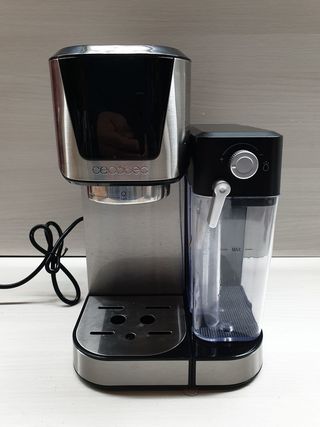 Cafetera expresso Cecotec en buen estado. Ideal para oficinas y para cafes espumoso como en los bares. Tiene calentador con espumador de leche incoorporado. Deposito de agua grande. Admire cafe en pastilla. - Incluye cuchara medidora y dos portafiltros. - Diseño elegante en acero inoxidable y negro. - Fácil de usar y limpiar.
