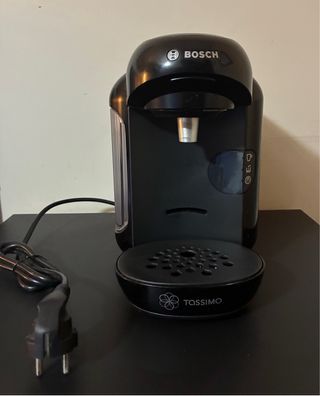 Cafetera de cápsulas Bosch Tassimo en color negro. Incluye soporte para cápsulas. - Diseño compacto. - Marca: Bosch. - Modelo: Tassimo.