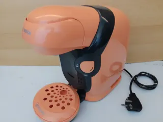 Cafetera de cápsulas Tassimo de la marca Bosch en color naranja. Un electrodoméstico compacto y moderno para preparar tus bebidas. nunca se ha llegado a usar - Diseño en color naranja. - Marca Bosch. - Modelo Tassimo.