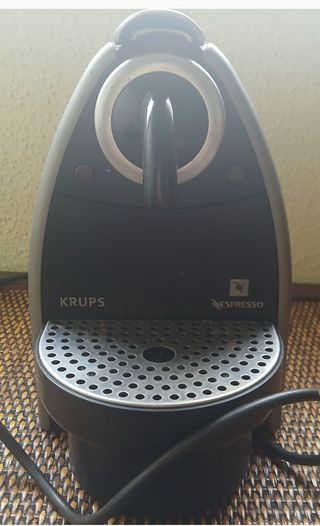 Cafetera Nespresso U Krups en color rojo. Incluye el depósito de agua y varias cápsulas de regalo. Seguramente haya que cambiarle la bomba, porque no coge bien el agua. Por lo demás, enciende y se programa correctamente. - Diseño compacto y moderno. - Depósito de agua transparente. - Incluye cápsulas de café.