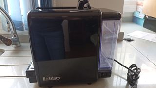 Cafetera de cápsulas en color negro, modelo Barista. Diseñada para preparar tu café favorito. - Acabado brillante. - Bandeja extraíble para facilitar la limpieza. - Botón de encendido con indicador luminoso.