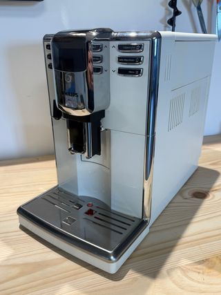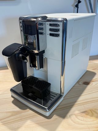 Cafetera automática Philips 5000 Series. - Acabado en blanco y cromo. - Panel de control intuitivo con botones. - Bandeja de goteo extraíble. La cafetera se utilizo durante 1 año, desde entonces habrá estado parada 2 años. La cafetera funcionó perfecta hasta que dejé de utilizarla. Ahora imagino que necesitará mantenimiento y una puesta a punto. La dejé de utilizar por paso a cafetera de cápsulas. No tengo la caja original.
