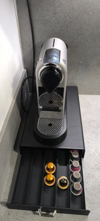 Cafetera de cápsulas Nespresso Krups Citiz en color plata. Incluye un cajón organizador para cápsulas. - Diseño moderno y compacto, ocupa muy poco espacio. - Cajón con capacidad para varias cápsulas. - Liquido descalificador y de limpieza de 750ml. SE HA USADO MUY POCO, FUNCINA CORRECTAMENTE, CAMBIO POR REGALO DE UNA SUPERAUTOMATICA
