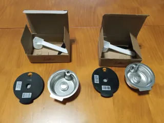 Conjunto de repuestos para cafetera Nespresso Krups. - Recipiente para cápsulas usadas - cesta (5 eur) - Bandeja de goteo con bandeja metálica ( 15 eur) - Depósito de agua transparente( 10 eur) - palanca ( 20 eur) Todo : 45 EU. Pregunta sin compromiso
