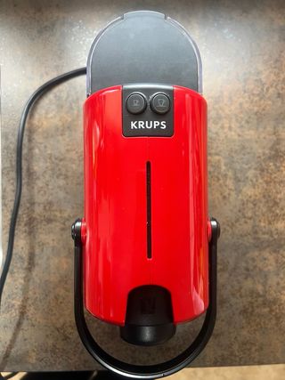 Cafetera de cápsulas Krups en color rojo. - Diseño moderno y compacto. - Botón de encendido/apagado. - Marca: Krups. No hay caja solo esta la cafetera Se retiro por otra algo más pequeña pero funcionando