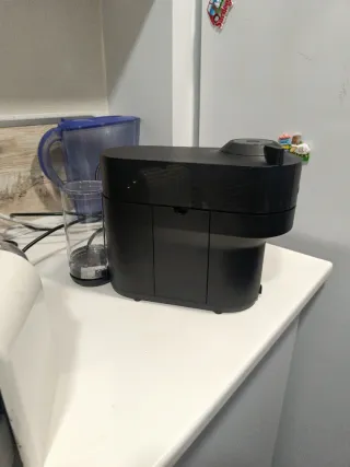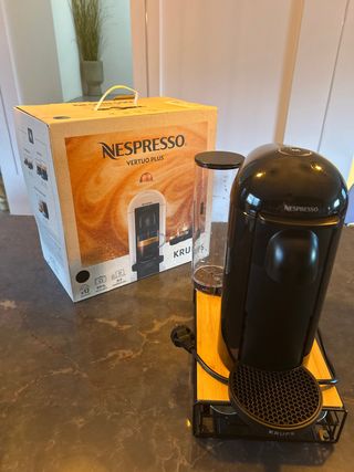 Nespreso Vertuo Plus Negra, se vende por falta de uso. Esta nueva use las capsulas que me vinieron y 5 cafes mas y costo 150€. Se vende con el soporte negro y madera. Solo venta en persona