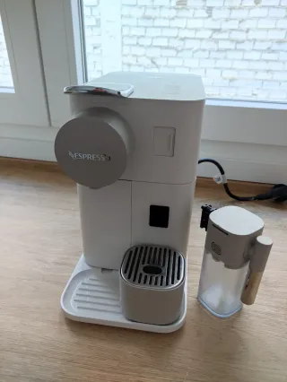 Cafetera Nespresso DeLonghi Lattissima One en color blanco y gris. - Diseño moderno y compacto. - Cápsulas Nespresso (compatible con otras marcas) - Incluye depósito de leche. - Se incluye tarro con cápsulas de distintas intensidades. Está en perfecto estado, como nueva. Se vende porque he tenido que dejar de tomar café.