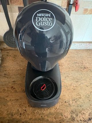 creo q le falta un boton, para reparar. Cafetera Dolce Gusto de la marca Krups en color negro. Permite disfrutar de una gran variedad de cafés y otras bebidas. - Diseño moderno y compacto. - Fácil de usar y limpiar. - Incluye cápsulas de muestra.