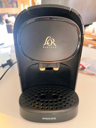 Cafetera de cápsulas Philips L'OR Barista en color blanca y negra . Diseñada para preparar café de forma rápida y sencilla. - Acabado en negro brillante. - Bandeja recogegotas extraíble. FUNCIONA PERFECTAMENTE