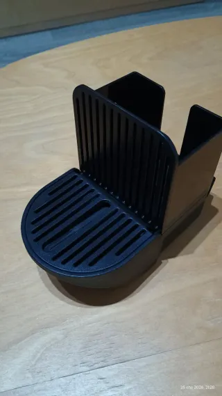 Pieza de repuesto para cafetera Nespresso Inissia. Fabricada en plástico negro. - Bandeja antigoteo. - Soporte para cápsulas.