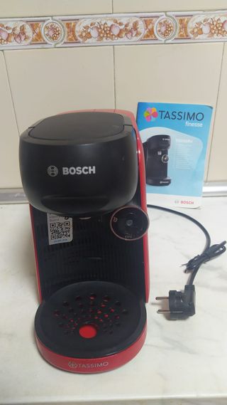 Cafetera de cápsulas Tassimo de la marca Bosch. - Color rojo. - Diseño compacto. En buen estado. Regalo dos paquetes de cápsulas de café.