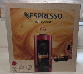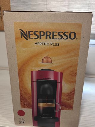 Cafetera Nespresso Vertuo Plus en color rojo. Diseñada para preparar café de forma rápida y sencilla. - Incluye 12 cápsulas de café. - Empaque 99% reciclable. - Visita nespresso.com para más información.