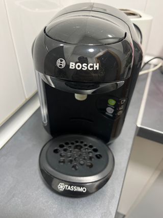 Cafetera de cápsulas Bosch Tassimo en color negro. Perfecta para preparar tu bebida favorita. - Diseño compacto y moderno. - Bandeja extraíble para tazas de diferentes tamaños. - Fácil de usar y limpiar.