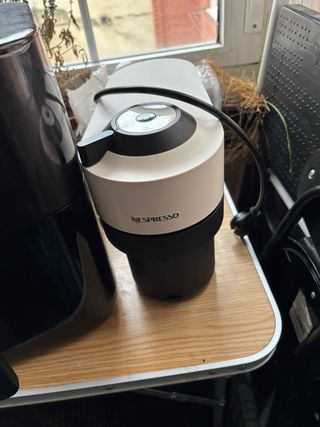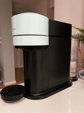 Cafetera Nespresso Vertuo en color blanco y negro. Diseño moderno y elegante para tu cocina. - Modelo Vertuo. - Acabado bicolor. (Turquesa) - centrifuga el cafe. - tengo capsulas tambien de regalo, unas 40 uds.