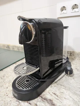 Prácticamente nueva, muy poco uso. Cafetera de cápsulas DeLonghi Citiz EN167.B en color negro (Nespresso). Diseño moderno y compacto, ideal para tu cocina. - Depósito de agua extraíble. - Bandeja recogegotas. - Visualización de nivel de agua.