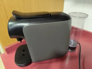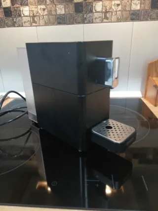 Cafetera Nosy de color blanco y negro, en perfecto estado. - Diseño moderno y compacto. - Fácil de usar. - Incluyo 18 cápsulas.