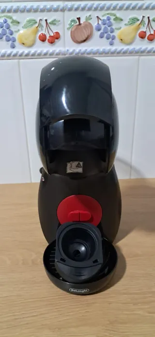 Cafetera Dolce Gusto Piccolo de Delonghi compacta, en color negro. En muy buen estado de conservación. Tenía una pequeña rotura en el recogegotas pero se ha sellado y no tiene ninguna fuga. (Ver imagen 5 y 6) - Sistema Nescafé Dolce Gusto de cápsulas. - 15 bares de presión automática regulable. - Botón On/Off iluminado. - Depósito de agua extraíble de 0,6 L. - Recogegotas ajustable para cualquier tipo de taza o vaso. Envío el mismo día de la compra si se hace antes de las 17:00 en día laboral. Para compras los sábados, domingos y festivos se realizará el envío al siguiente día hábil.