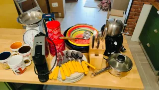 Cafetera de cápsulas Krups en color gris prácticamente nuevo. Tostadora, platos tenedores, cuchillos, botes metal, cuencos porcelana, bascula, tazas Starbucks , caserola... Lo que ves en los fotos...