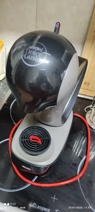 Cafetera de cápsulas Dolce Gusto en color rojo y negro. Un diseño moderno para tu cocina. - Compacta y fácil de usar. - Bandeja recogegotas ajustable. - Totalmente nueva usada para 3 cafes contados