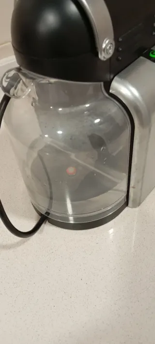Cafetera de cápsulas Krups Nespresso.a la cafetera se le sale el agua del depósito , no porque el cristal esté roto sino porque le falta una gomita redonda en el anclaje de abajo lo que hace que funciona correctamente pero o usas poca agua y en cuanto echa el café lo quitas , o se sale el agua por abajo de la máquina poco a poco . Es una pena porque tiene muy poco uso pero desde que se perdió la goma se le sale el agua por abajo . depósito de agua extraible - Diseño compacto y elegante. - Color negro