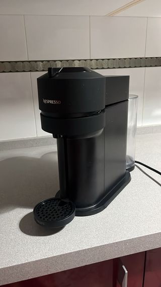 Cafetera Nespresso De'Longhi Vertuo Pop en color negro. La vendemos porque a veces lee las cápsulas y a veces no, usamos unas tapas de Amazon para reusar las cápsulas con café molido, quizás limpiar el sensor/lector haga que funcione siempre. Tiene 1 año de uso, funciona muy bien cuando lee la cápsula, no tenemos tiempo para intentar que lea siempre bien, ni tampoco queremos comprar las cápsulas originales.