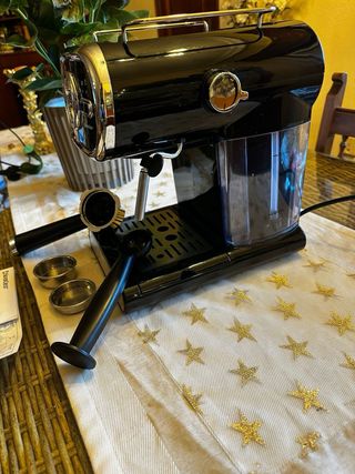 Cafetera espresso SilverCrest de color negro. Dispone de calentador de leche, usada en dos ocasiones pero finalmente no la uso por tener una de capsulas. (Cafetera dolce gusto capsulas cocina mesa silla plancha decoracion cuadro)