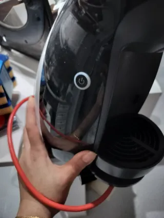 Cafetera automática de cápsulas Dolce Gusto de la marca Delonghi. Su diseño compacto y moderno la hace ideal para cualquier cocina. Conservada en buen estado. Funciona perfectamente. - Color negro y gris. - Bandeja recogegotas extraíble. - Cable de alimentación rojo.