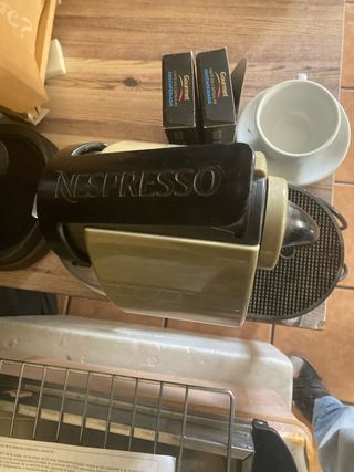 Cafetera Nespresso en color negro y beige. Ideal para preparar tu café favorito. - Diseño moderno. - Marca Nespresso. - Se regala tazas y 16 cápsulas